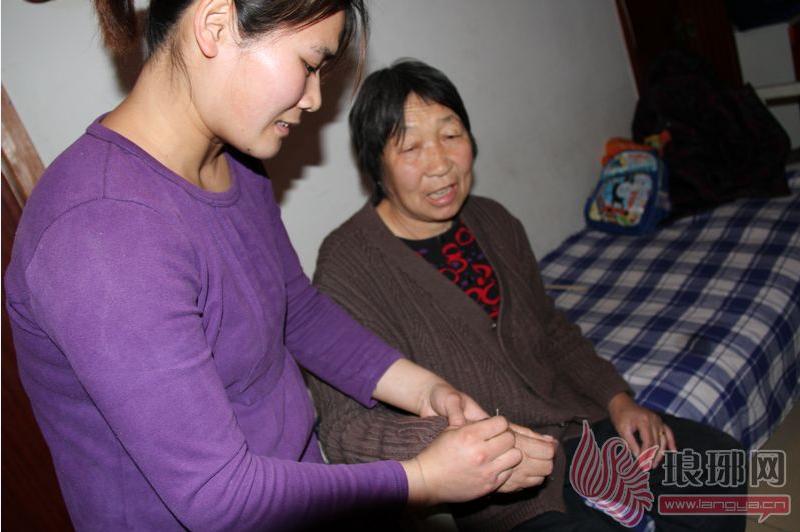 孙洪磊在给婆婆针灸。