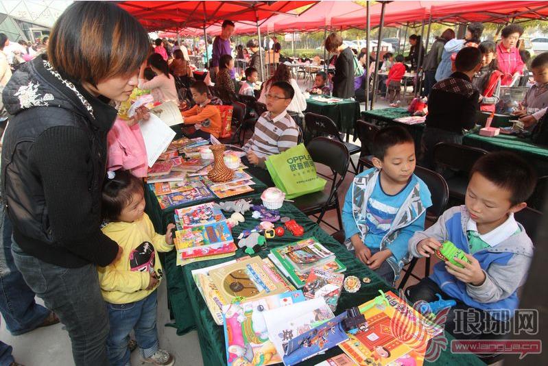 “这一桶积木您卖多少钱?可以拿我的布偶跟您换么?”10点整,当活动正式拉开帷幕,现场早已聚集了上千名老板及顾客,叫卖声、讨价还价声充斥着整个广场。现场各种商品琳琅满目,儿童区有玩具、画册、文具用品、小食品等,成人专区有鱼缸、家用电器、车上用品、衣服、工艺品等,现场仿佛成为一个热闹的大集市,来来往往的顾客们穿梭在各个摊位前,或买或卖或交换,场面热闹非凡、交易十分火爆。