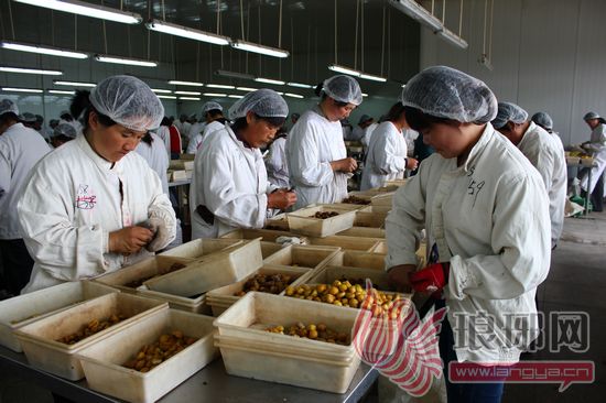 22日,山东富亿农食品有限公司加工车间内一片繁忙景象,上百名工人正在给板栗清洁、剥壳、筛选、包装。该公司是蒙阴县垛庄镇最大的一家板栗深加工企业,年加工量达到2万吨。