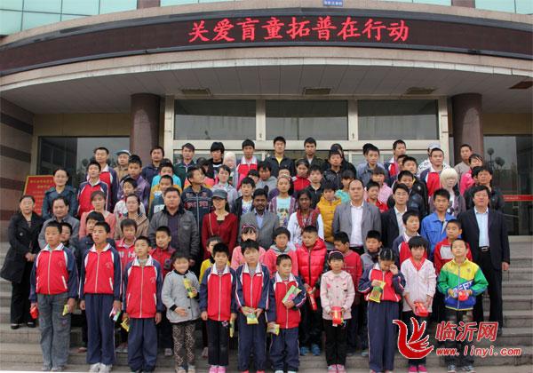 临沂网讯 (记者 战雯)2012年10月24日,车身贴着“关爱盲童 拓普在行动”字样的爱心车来到临沂特殊教育中心学校外面,临沂市拓普网络有限公司员工带着大量爱心物资在这里对贫困视障儿童进行爱心捐助活动。拓普公司印度籍员工BABU和KAMALAM作为国际友人,也去为孩子们献上自己的一份爱心,并参观了学校的康复教育功能室、素质教育教室等。