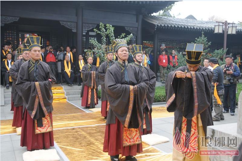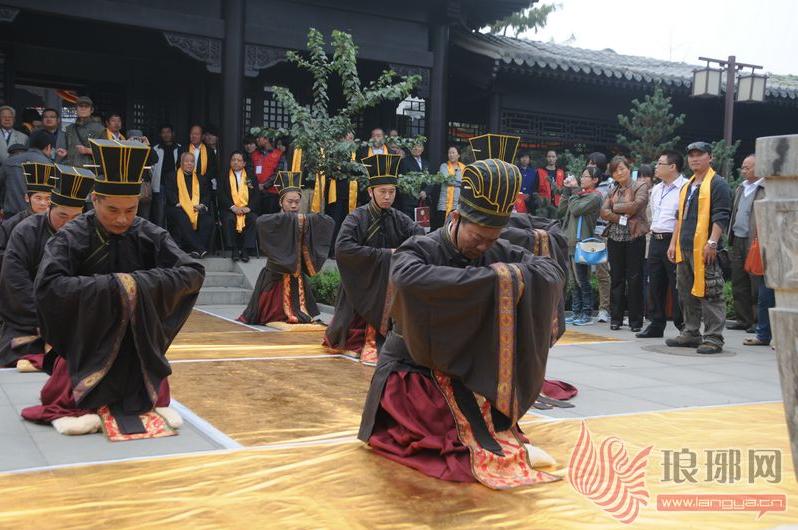 26日上午,中国临沂第二届孝文化节系列活动之一——“孝之道”孝圣祭拜仪式在王羲之故居举行,50多位身着汉服的演员,通过进馔、上香、献礼、恭读祝文等环节,还原了古代拜祭孝圣王祥的恢弘场面,表达了对孝圣王祥的追思和崇敬。 在本届孝文化节上,大型古式祭拜孝圣活动成为一大亮点。50多位身着汉服的演员,通过进馔、上香、恭读祝文、行礼等环节,还原了古代拜祭孝圣的恢弘场面,庄严肃穆的拜祭仪式震撼了在场的观众。