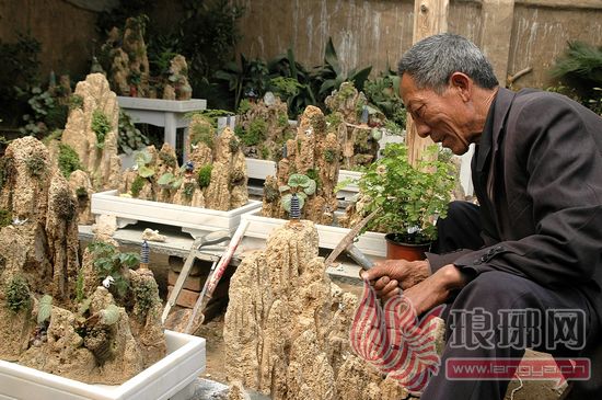 日子越过越好的刘宝臣,有了闲暇时光来制作盆景。