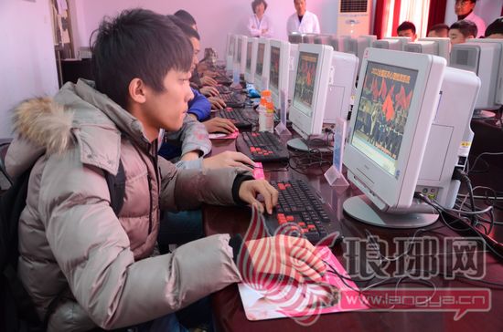 1日,来自金雀山街道的应征青年正在进行心理测试。
