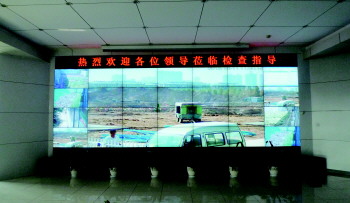 临沂市数管中心进行大屏测试时显示的工地情况。