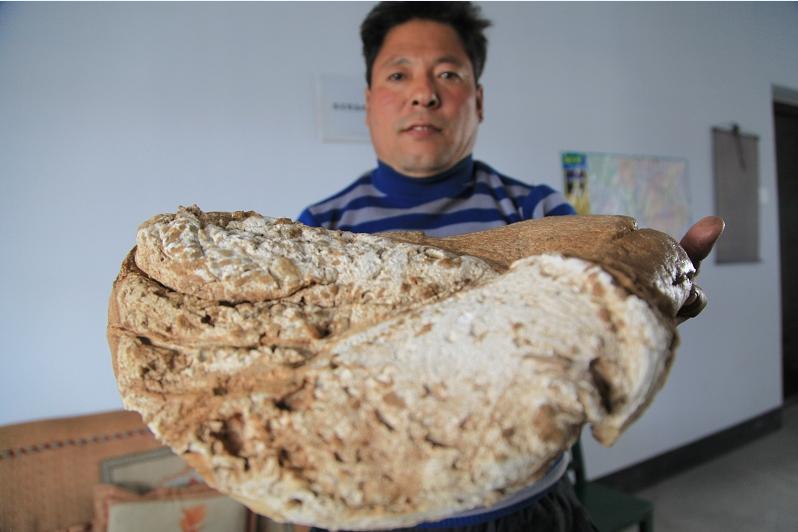 据石运佳介绍,这块“宝贝”是1996年时,他在黑龙江省尚志市亚布力滑雪场附近捡到的。“当时我到河边喝水,突然在河里看到了一个乳白色的物体,便将其捡了出来。”石先生说,刚捡到这块物体比现在要柔软得多,用一根草棍就可以戳进去。