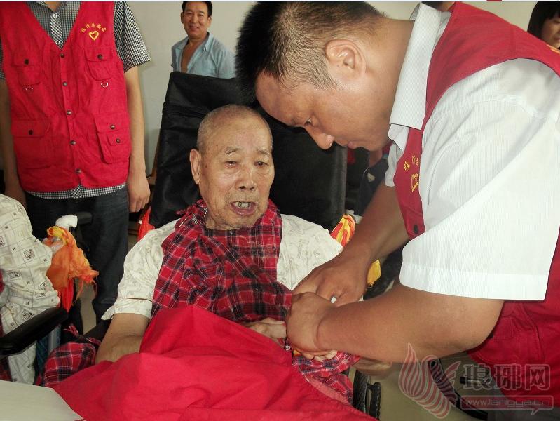 王金龙等志愿者在敬老院为老人剪指甲
