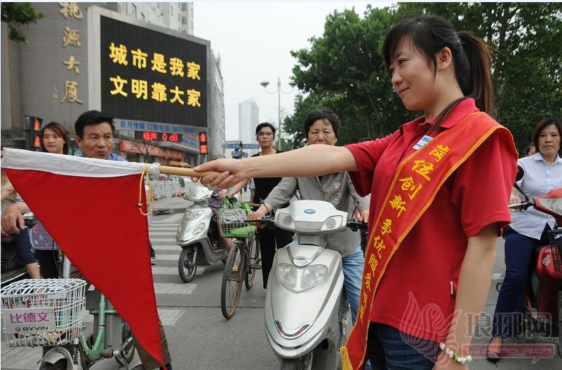 志愿者在街头维持交通秩序