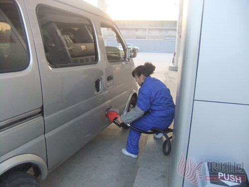 一加油站工作人员在加油