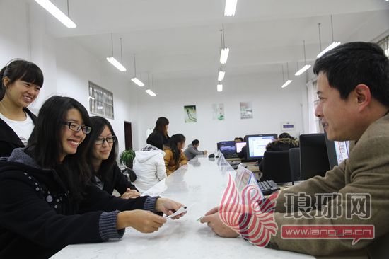 临沂大学学生在阳光师生服务大厅体验一站式服务