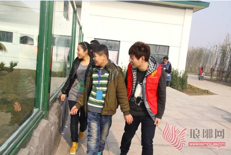 临沂志愿者携手智障儿童游动植物园。