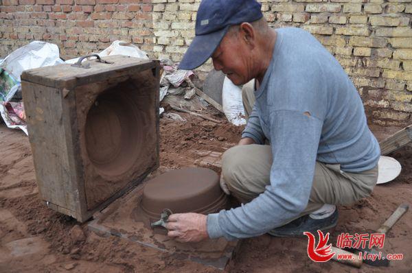 图2高树文在修理成型的土锅