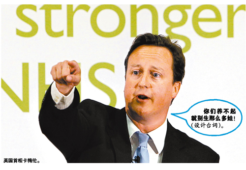 去年10月,英国文化大臣亨特也曾公开呼吁不愿意工作的家庭养不起小孩就别生。他表示,资助越来越多的育儿津贴并非国家的责任。 (熙怡)