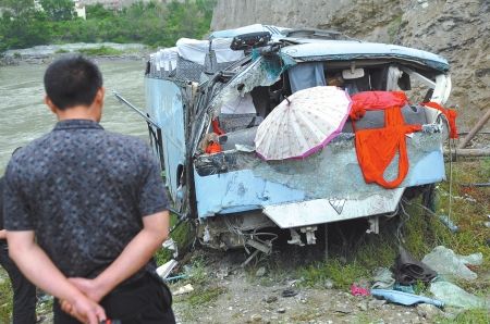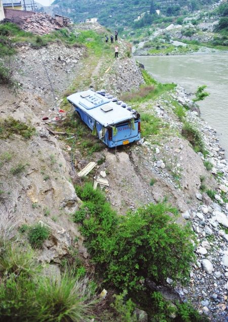 客车坠落在距河面七米的斜坡上