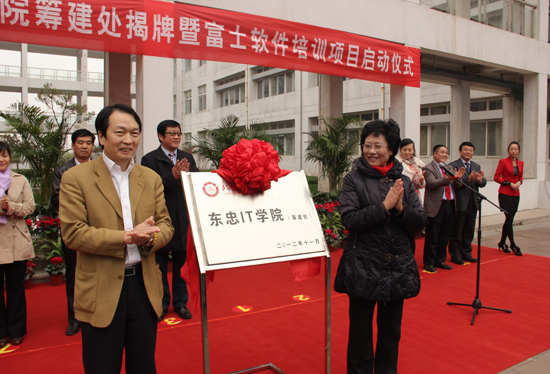 丁凤云、丁伟儒共同为东忠IT学院筹建处揭牌