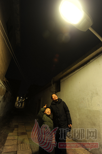在书院小区赵家巷,海洋小朋友对妈妈说路灯亮了,以后晚上出来玩不用手电筒了。