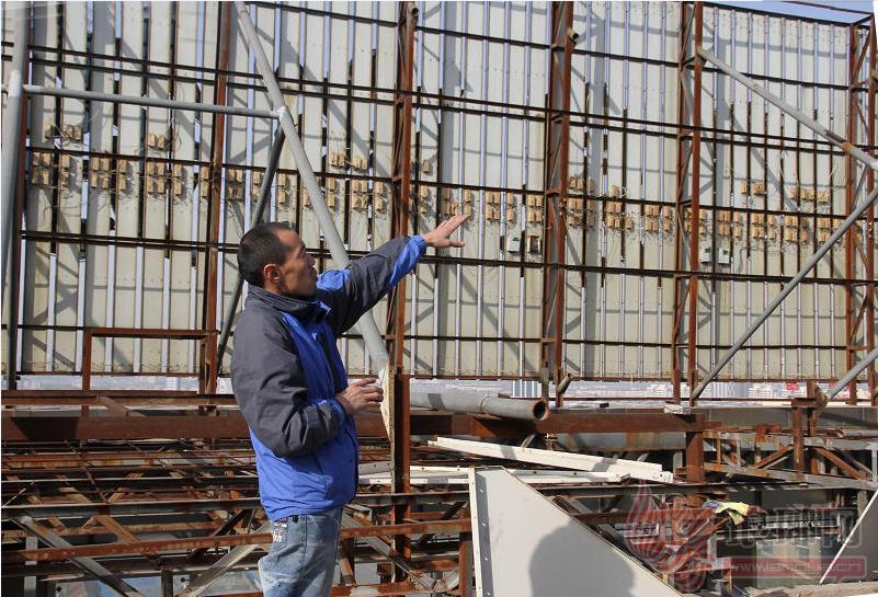 据拆除现场工作人员介绍,此广告牌是我市最大的户外楼顶广告牌,拆除广告牌困难较高,且冬季高空作业存在一定的危险。“楼高有100多米,广告牌周长约60米,拆除难度很大,需要配合大型吊车和气焊等设备。”工作人员介绍,为节省拆除的费用,河东区城管局执法人员力争在一天内清除该大型广告牌。清除超高楼顶户外广告牌后,将在其楼顶死角安装航空障碍灯。
