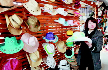 “重坊镇虽然远离县城,可是劳动力的工值在全县最高,工人难招。”重坊博林工艺品合作社的汤学周告诉记者,重坊镇的老百姓历来有冬卖瓜仔、夏卖西瓜的经商传统,加上青壮年都喜欢到外地摆摊或打工,因此农村剩下来的劳动力多是妇女和老人。为了解决劳动力的巨大缺口,合作社从河南鹿邑县招来10多名机工,在河南老师傅的带领下,他们都特别善长机织草帽,每日工资均在200元以上。记者在加工车间看到,这些来自河南的小伙子、小姑娘,手艺娴熟,双手拿着草匹,在机械织机上“跑针”,不到一分钟,一顶草帽便织成了,让人拍手叫绝。
