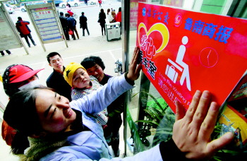 29日下午1点钟,本报记者和临沂市公交总公司工作人员一起,为爱心单位发放“爱心候车室”门贴。在新闻大厦北门卖报亭,杨大爷接过“爱心候车室”的门贴后高兴地笑了。他围着报亭转了一圈,找了一处最显眼的位置,小心翼翼地把“爱心候车室”门贴粘好。杨大爷乐呵呵地说:“有了这个标志,市民可以放心过来候车,不必再有顾虑了。”