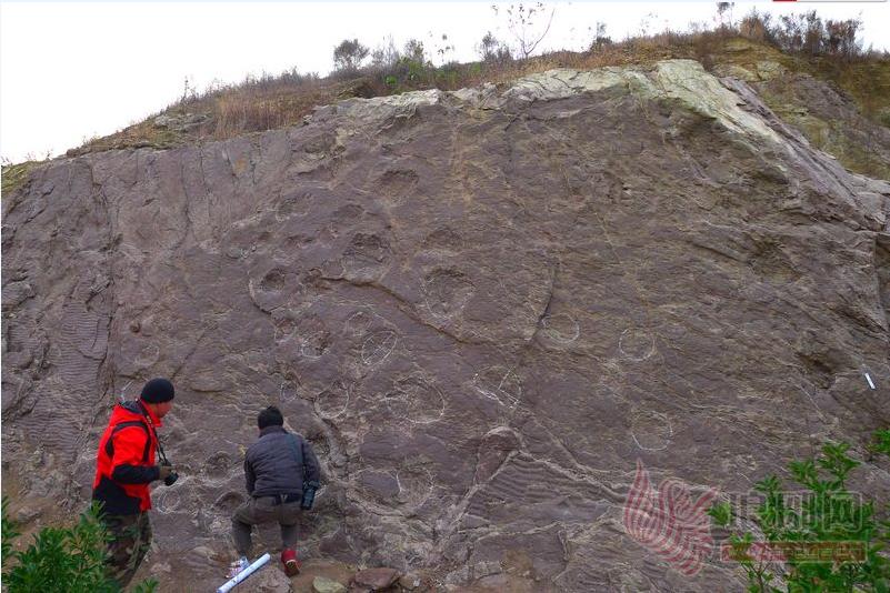 “这次发现的驰龙足迹化石比较隐蔽,在高坡上,站在梯子上才能看见。”王正河介绍,这批恐龙足迹形成于早白垩世晚期,距今约一亿年,化石具有空间分布广、层位多、种类丰富、古地理环境较为一致的特征。
