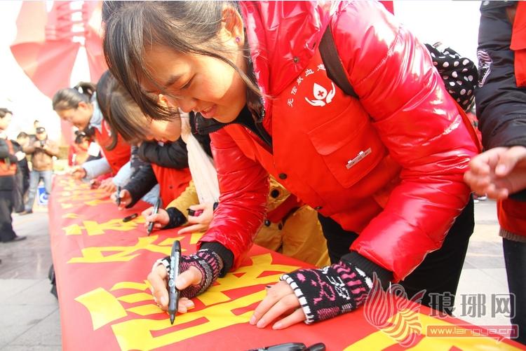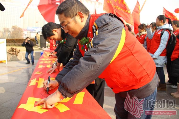 启动仪式上,临沂志愿者纷纷在条幅上签名