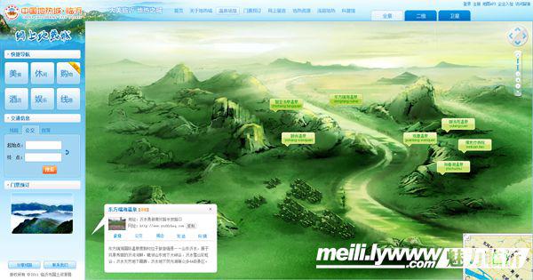 “网上全景地热城” 采用的是全景互动漫游技术。据悉,这项技术目前仅应用过于“网上世博会”,国际展览局对“网上世博会”给予高度评价,认为这是“世界展览历史上一次革命性的创举”。“网上全景地热城“旨在全面提升各温泉旅游企业品牌形象,塑造企业知名度及美誉度,展现企业综合势力,打造立体化、全方位的“温泉之旅”综合信息平台。