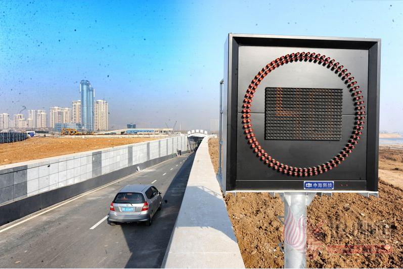 在滨河大道北侧的隧道B匝道入口处,一个电子限速提示器显示着“40”的字样,这也标志着隧道入口处的最高时速不得超过40公里,而根据设计,隧道内部最高时速为60公里。按照这样的行驶要求,记者驾车全程计时通过:从位于凤凰广场南侧的入口驶入,至电视发射塔北侧的出口驶出,手机上的计时器只走过了150秒的时间。而初入隧道前看到的那“小小”的发射塔,此刻已高耸着竖立在眼前,恍若一次时空穿梭,神奇地穿过了三河交汇处那宽阔的水面。