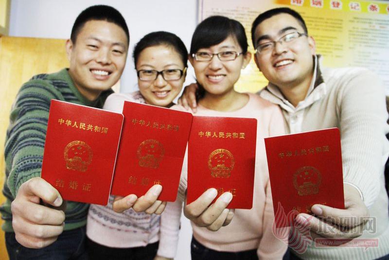 朋友约好一起“组团”登记结婚。记者 展萍 王逸群 摄