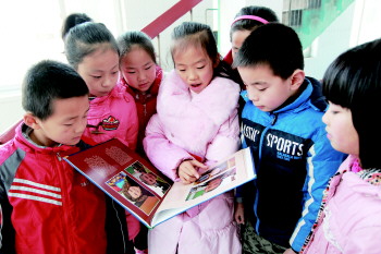 苏天然同学把美国朋友赠送的画册拿给同学们观看。 记者 梅鲁生 摄