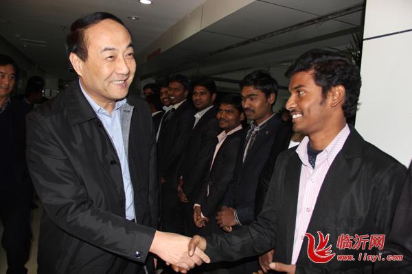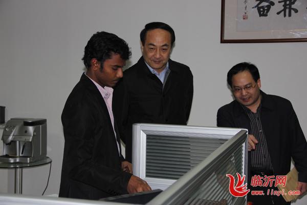 丛局长一行在会议室认真听取了王总对临沂市拓普公司发展状况、鲁南中印软件园的建设以及印度专家的引进情况的介绍。丛局长与印度专家BABU进行了亲密交谈,对他们能来中国工作表示感谢,希望他们能真正适应这里的工作和生活。