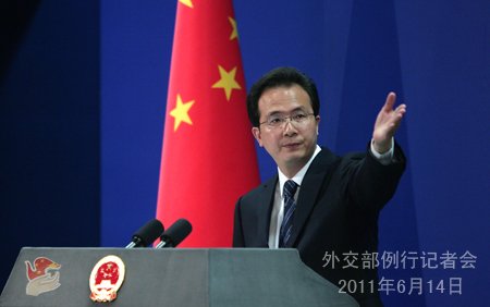 2011年6月14日,外交部发言人洪磊主持例行记者会