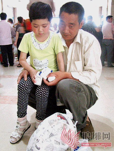 14日上午,记者在市人民医院门诊大楼外见到了赵文清和她的父亲赵洪芹。赵洪芹刚领女儿看完病,手提袋里装了一堆药。“医生建议孩子住院治疗,我没接受。一方面,看病这么多年,花钱太多了,另一方面,以前在别的医院也住过,短时间住院效果不大。还是拿点药回去吃吧。”赵洪芹说。
