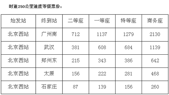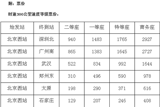 根据日前公布的京广高铁票价表,北京至广州,时速300公里高铁列车最便宜的二等座票价为865元,最贵的商务座则高达2727元。