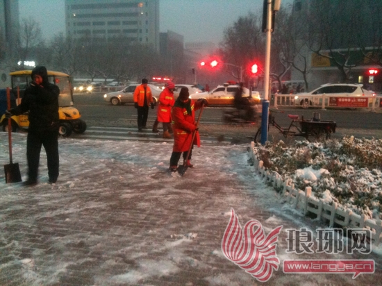 此次降雪后,记者看到在道路上、人行道上从事清雪除冰的基本上都是环卫工人。记者了解到,针对降雪天气,临沂环卫集团专门制定了清雪铲冰工作应急预案,对应急处理的措施、清除时限、标准要求以及重点保障的道路均有严格的要求。12月28日、29日,临沂环卫集团组织3000余名环卫工人用铁锨、推雪板等工具对城区主次干道进行清扫,对易结冰路段进行撒盐融雪、除冰。29日,随着降雪增大,临沂环卫集团又组织5台清雪铲车对城区主干道的积雪进行清理。