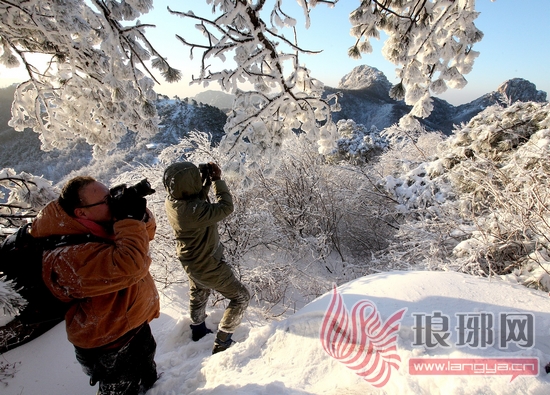 30日,雪后初晴,山东蒙山国家森林公园(蒙阴)云蒙景区栖凤山景点银装素裹,惹人喜爱。几名影友扛着“长枪短炮”来此定格下一个个浪漫、美丽的瞬间。 通讯员 公茂栋 记者 刘遥 摄