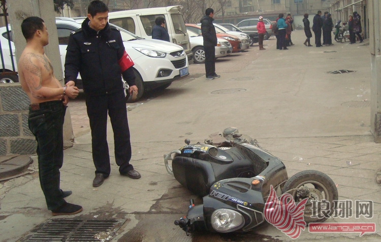 嫌疑人蒋某作案的摩托车被吕洪阳扑倒,蒋某最终也没跑掉。