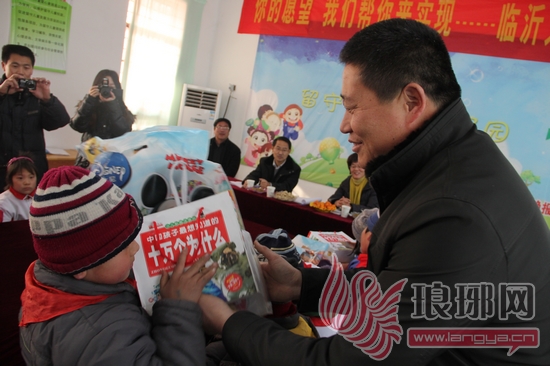 1月8日,由临沂市妇联和沂蒙晚报联合发起的“你的心愿,我们帮你实现——留守儿童圆梦行动”来到临港经济开发区坪上镇牛庙联小留守儿童“爱心家园”,在临沂太谷房地产开发有限公司的帮助下,20名家庭比较困难的留守儿童全部收到了新年礼物,实现了他们的新年愿望。