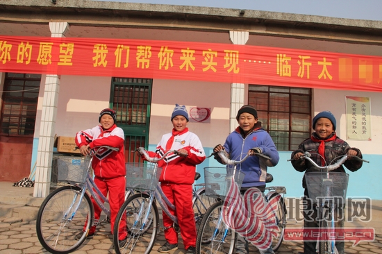 4名孩子得到自己心爱的自行车