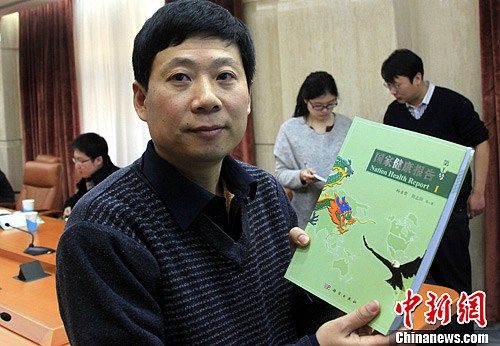 1月8日,中国科学院国家健康研究组历时10年研究推出的《国家健康报告》第1号在北京正式发布。图为中科院国家健康研究组组长杨多贵研究员展示新鲜出炉的报告。中新社发 孙自法 摄