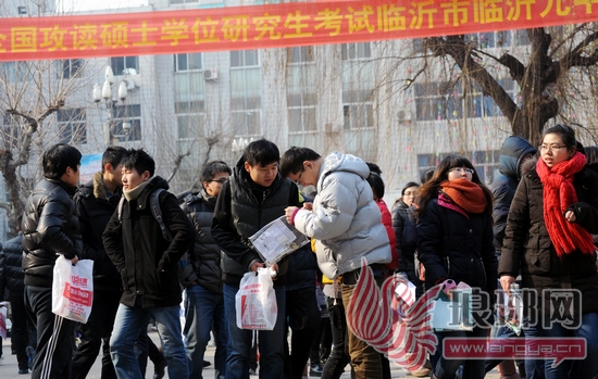 5日,在临沂九中考点,和其他1000余名考生一起,临沂大学商学院2009级学生刘连江参加了研究生考试。完成了上午的考试,刘连江感觉考得还可以,“班里很多同学都报名考研,我也想趁着年轻好好奋斗一把,为以后找工作增加点筹码。”
