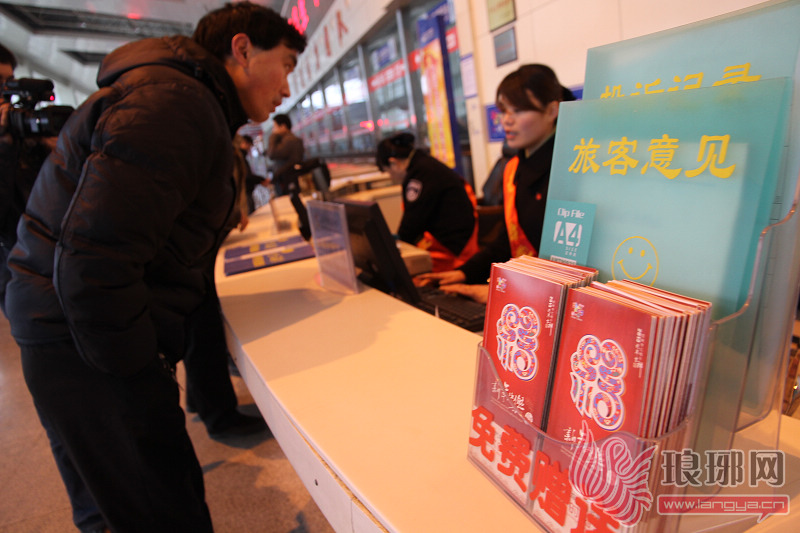 临沂汽车客运总站服务台上摆放着免费赠送的客车时刻表