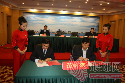 29日,市卫生局党委书记、局长吕富与中国人保财险临沂市分公司总经理李连亮签订承办合同。