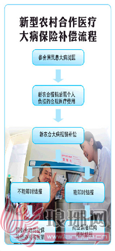 符合新农合大病保险补偿范围的参合居民在即时结报定点医疗机构住院治疗的,出院结算实行新农合报销与新农合大病保险一站式即时结报。参合居民在不能实行即时结报的定点医疗机构住院治疗的,先到县区新农合经办机构办理新农合报销,再到商业保险经办机构办理新农合大病保险补偿。