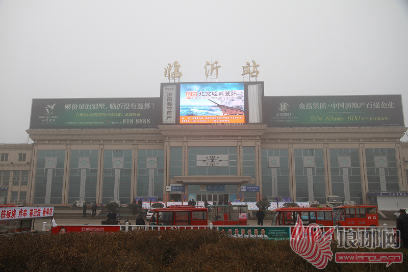 雾霾笼罩下的临沂市火车站