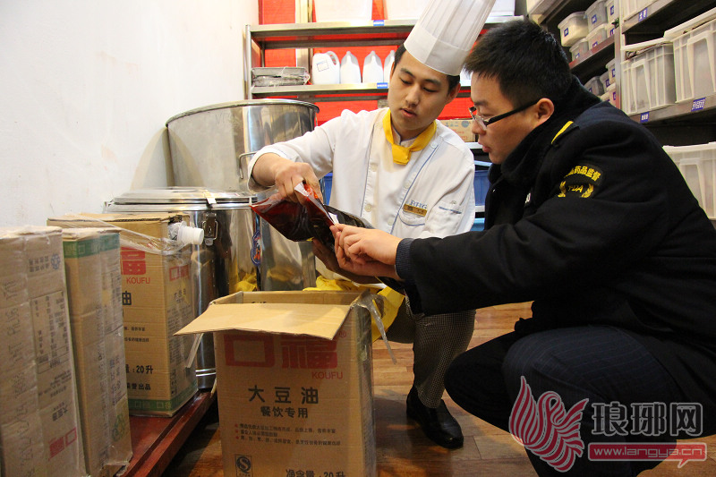 酒店用的食用油也是必查项目,检察人员索证索票.,确保从正规渠道货