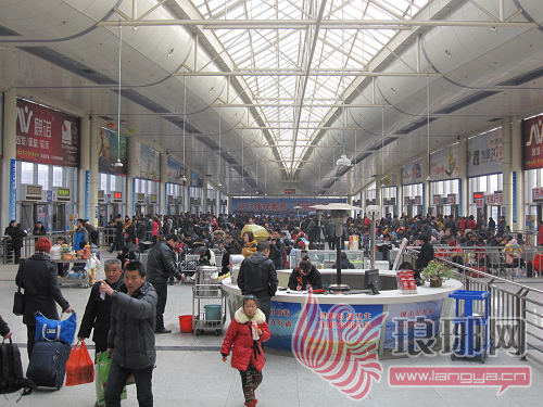 临沂客运总站省际候车区,选择初八出行的旅客不在少数。 记者 王健 摄