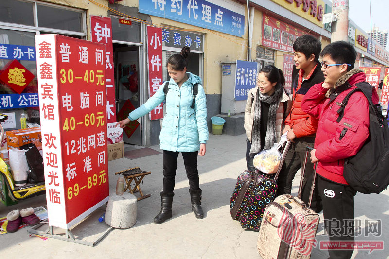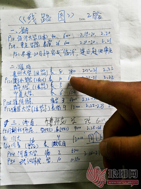 19日早上7点,赵斌、石义领等四名考生便早早地从滕州坐车抵达了临沂。上午8点,顺利地报上名后,他们又马不停蹄地赶到了车站附近找了一家60元一夜的小旅馆住了下来。中午为了省钱,他们几个人的午餐就在小摊上打包带回了宾馆。吃完饭,来不及收拾,赵斌便从包中掏出了报考指南,查看各场考试的时间。