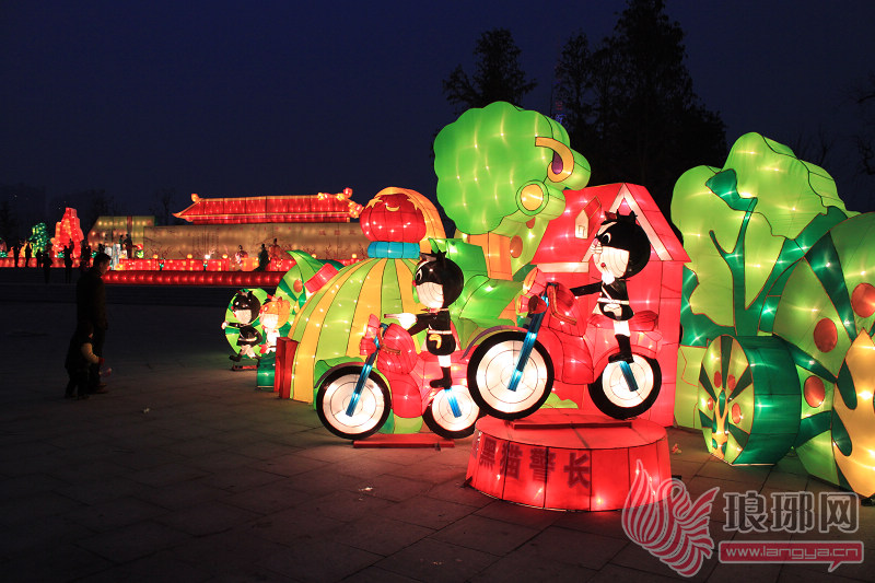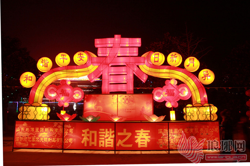 15日(农历正月初六)晚6时,凤凰广场10组大型灯组通电,刹那间形成灯影交融、璀璨绚烂的花灯世界,这标志着滨河景区“2013年临沂元宵灯会”正式亮灯。