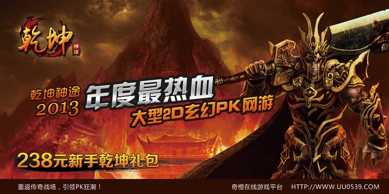 2013年最火爆的大型2D玄幻PK网游上线了!让游戏回归简单,创造属于这个年代的传奇!《乾坤神途》2013年3月1日正式开启不删档内测!冲级比赛、攻城、送网费等活动多多、装备多多!还有现金大奖等你拿!亲!要hold住!我们相约天藏大陆斩妖除魔!