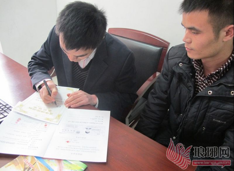 红十字会的工作人员在办理李海英的遗体(角膜)登记证书