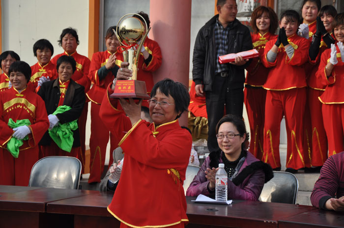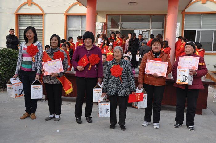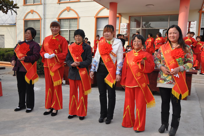 文艺演出队刚一退场,“好媳妇好婆婆”的演讲比赛就开始了。她们一个个按次序上台,媳妇夸婆婆,婆婆夸媳妇,用质朴的语言述说着真情,用家庭小故事诠释人间大爱,感动着在场的每一个人。最后根据评委给分公布了3个表演队成绩和6对“好媳妇好婆婆”个人成绩,为获奖的集体和个人颁发了奖杯、荣誉证书及奖品。